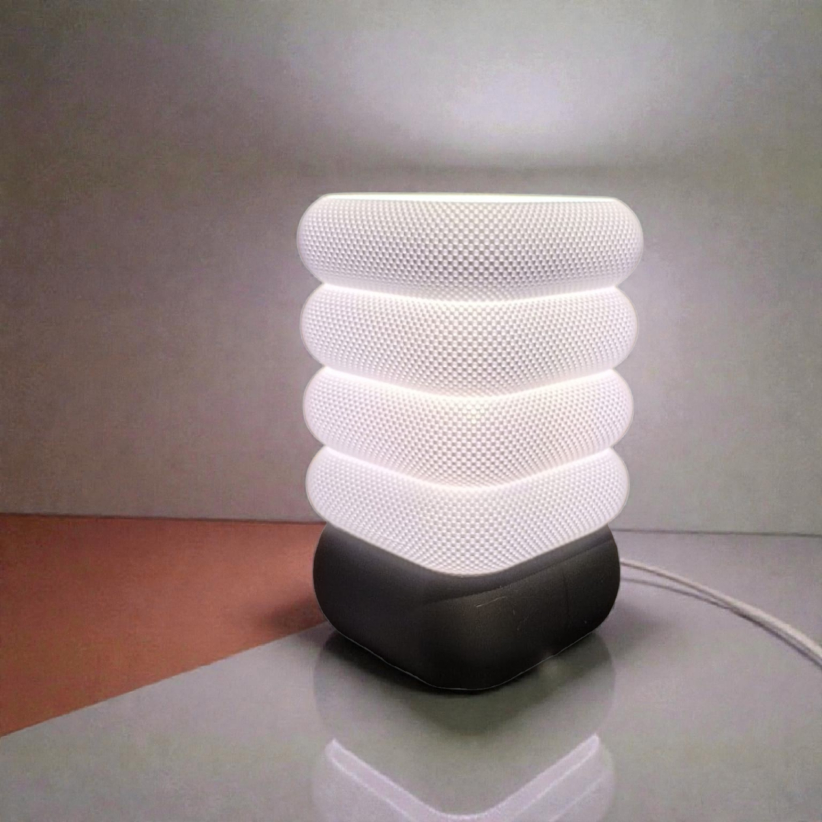 Această lampă LED de masă este concepută pentru iluminare ambientală și decorativă, fiind ideală pentru spații de relaxare sau lucru. Designul compact și texturat difuzează uniform lumina, creând o atmosferă plăcută fără a obosi ochii.