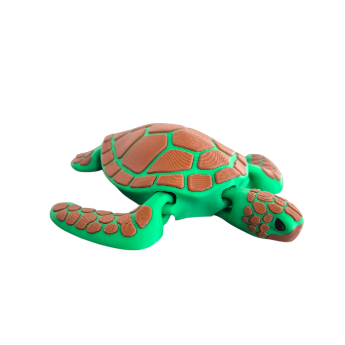 Țestoasa Marină Articulată 3D este o jucărie flexibilă, imprimată din PLA biodegradabil, realizată special pentru copiii peste 5 ani. Fiecare model are articulații multiple, astfel încât se poate mișca natural și poate fi poziționat în multe feluri. Carapacea texturată și culorile puternice îi oferă un aspect modern și atrăgător.