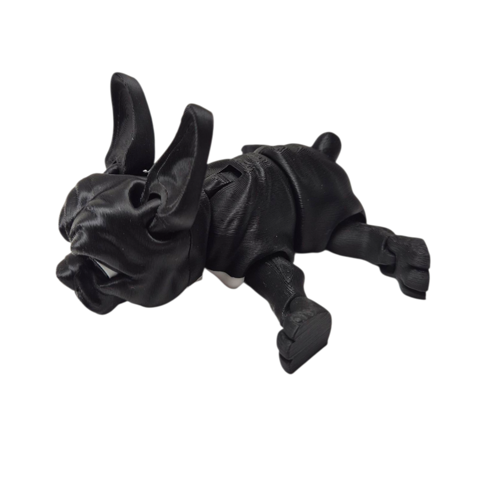 Modelul păstrează trăsăturile specifice rasei French Bulldog. Botul scurt, urechile mari și corpul compact îi conferă un aspect autentic. Suprafața printată 3D evidențiază detalii fine fără a compromite siguranța la manipulare. Nu are piese detașabile mici, iar articulațiile sunt proiectate să reziste la utilizarea repetată.