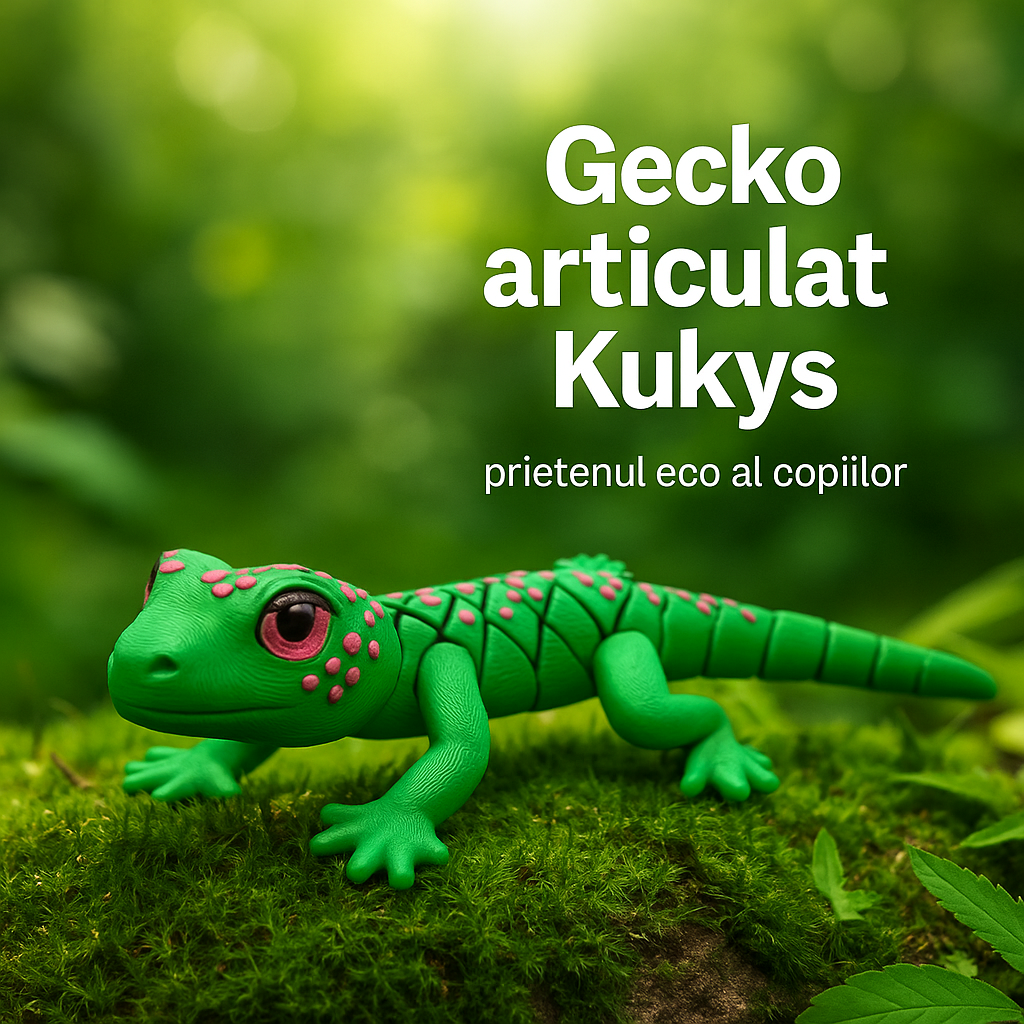 Aceasta soparla gecko articulata si imprimata 3D este o jucărie concepută pentru copiii care iubesc reptilele și figurinele flexibile. Modelul are un design prietenos, cu o formă curbată, ochi mari și expresivi și detalii colorate. Corpul este segmentat și permite mișcarea naturală, inspirată de reptilele reale. Fiecare segment oferă flexibilitate, ceea ce îl face ideal pentru joacă și poziționări diferite.