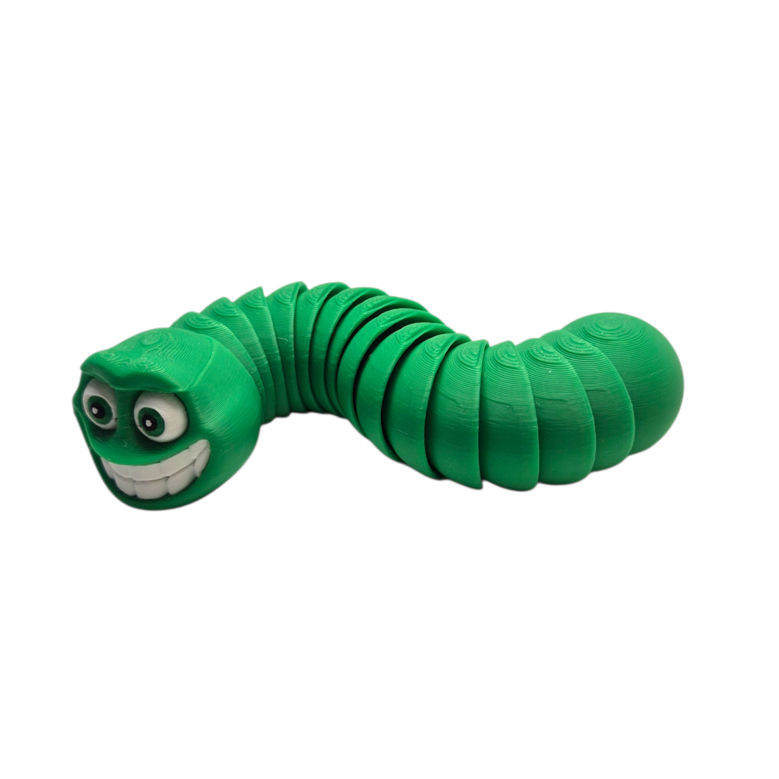 Omida Flexibilă Zâmbitoare 3D este o jucărie articulată concepută pentru copii de 5+ ani, cu un design amuzant și culori intense, ideală pentru joacă, TikTok, Reels și conținut video datorită modului în care se mișcă natural atunci când este balansată. Modelul este printat 3D din PLA biodegradabil, un material sigur pentru copii și potrivit pentru utilizarea de zi cu zi. Structura compusă din segmente mobile permite omidei să se curbeze, să alunece sau să creeze efecte vizuale interesante atunci când este mișcată rapid, oferind o experiență tactilă relaxantă pentru cei mici.