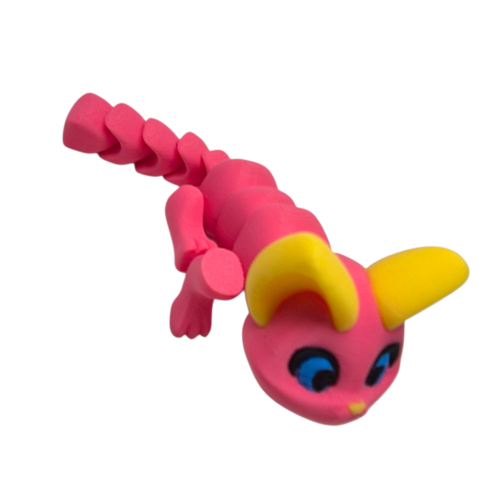 Culorile vii atrag imediat atenția copiilor și se integrează perfect în tendințele actuale de pe TikTok și Google, unde jucăriile colorate și flexibile sunt foarte populare. Segmentarea modelului permite mișcări fluide, ceea ce transformă figurina într-un joc antistres apreciat atât de copii, cât și de adulți. Pisicuța Flex Roz poate deveni cu ușurință parte din jocuri de rol, povești creative sau colecții personale.