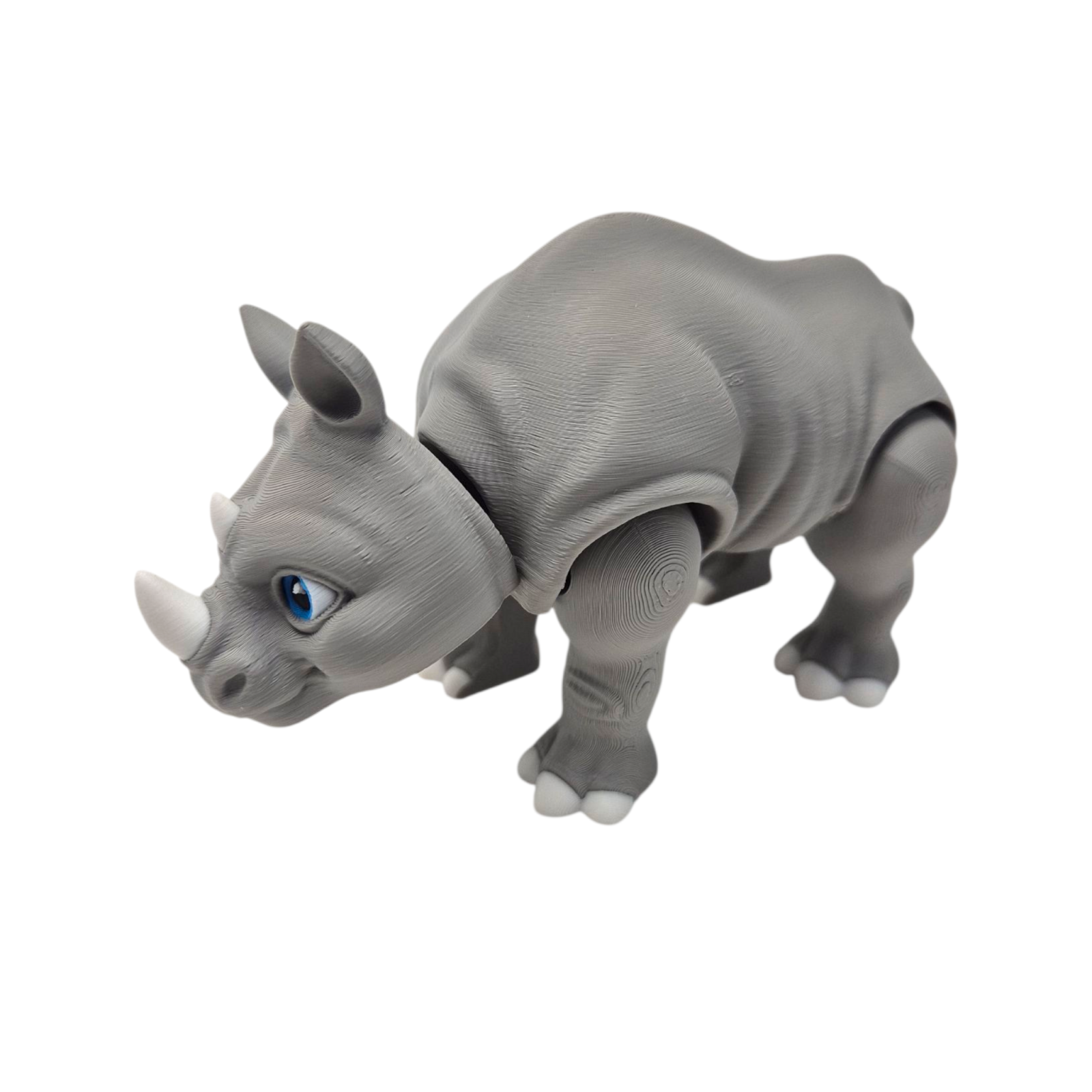 Rinocerul Articulat Kukys este o jucărie printată 3D concepută pentru copiii care adoră animalele sălbatice și figurinele realiste, dar sigure și ușor de manevrat. Modelul are un design prietenos, cu detalii atent lucrate, textură fină și articulații flexibile care permit poziționarea în mai multe posturi de joacă. Printarea 3D oferă forma specifică rinocerilor africani, cu corp robust, piele modelată și un aspect expresiv care îi atrage imediat pe copii.