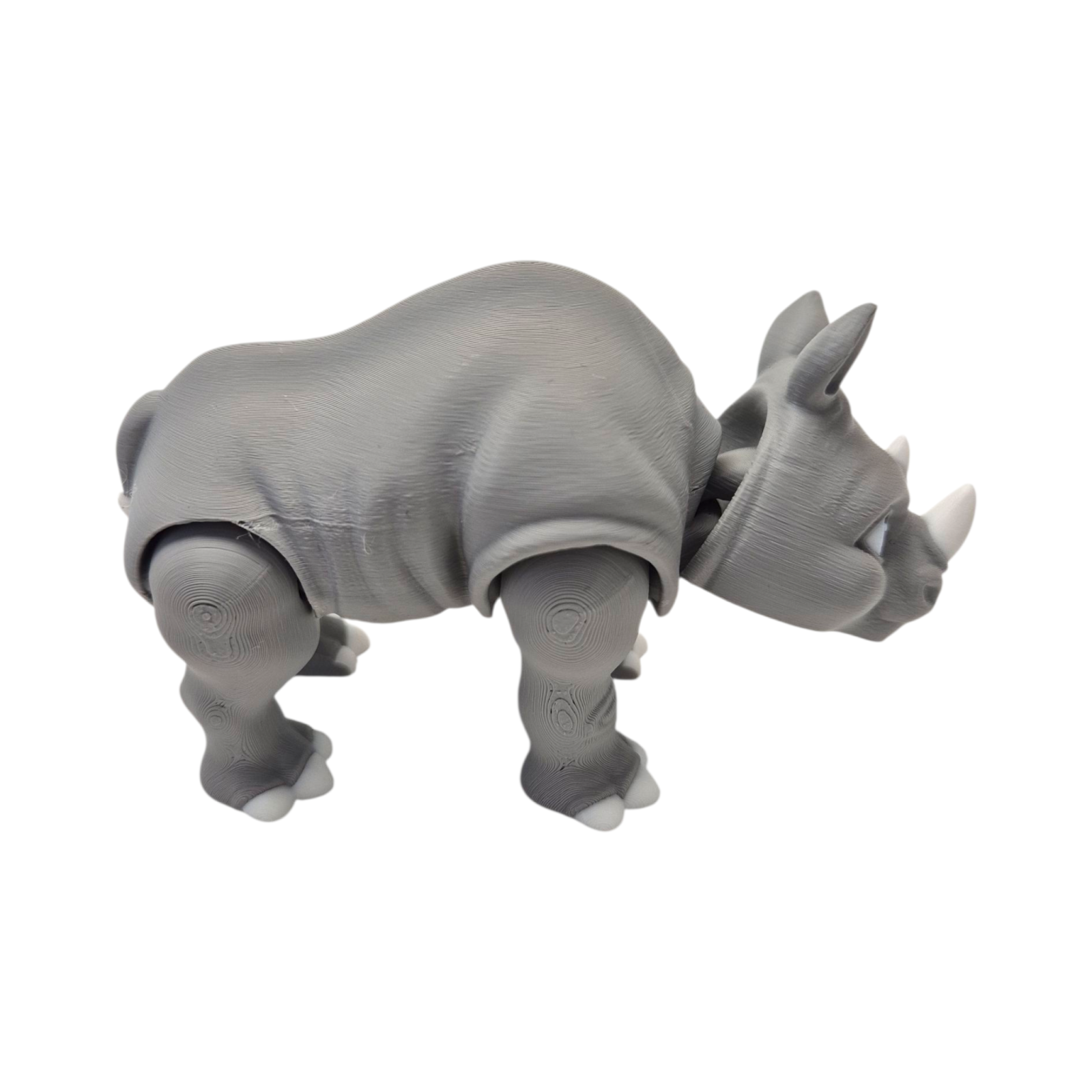 Rinocerul Articulat Kukys este o figurină printată 3D din material PLA, cu detalii realiste și un design expresiv. Toate articulațiile se mișcă ușor, permițând copilului să îl poziționeze în diferite posturi. Textura fină și formele rotunjite îl fac sigur și plăcut la manipulare.